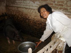 Cô La Thị Bẩy đang cho heo ăn (Ảnh: Hoài Nam) |