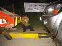 Các loại xe đời mới hiện nay, đôi khi xảy ra sự cố làm cả bốn bánh đều không chạy được nên phải có xe thớt - một loại xe chuyên dụng - để đưa xe gặp nạn lên sàn tải. Công đoạn đưa xe gặp sự cố lên sàn tải vô cùng phức tạp. "Muốn đưa xe lên thớt thì trước hết phải đổ bọt xà phòng cho trơn mới có thể kéo hẳn xe lên. Rồi sau đó cố định xe nằm an toàn trên sàn", Công cho biết. Bác Liêm, một cứu hộ viên "U.50", công tác cùng công ty của Công và Lượng kể: "Nhiều khi cứu hộ chưa xong cho một xe thì phía trước lại xảy ra một tai nạn khác. Lúc đó mình phải tức tốc chạy đến chở người đi cấp cứu. Phía sau kéo xe gặp nạn còn trong khoang lái là người bị nạn. Thế là vừa cứu xe vừa kiêm luôn cứu người".