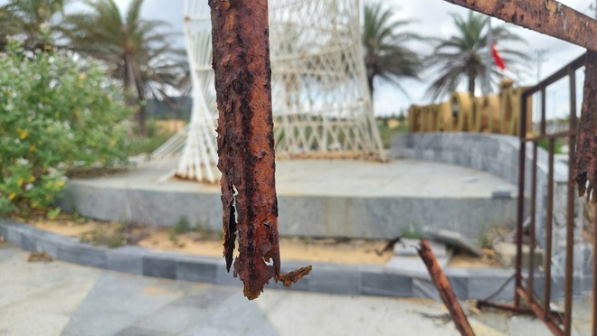 Theo ghi nhận của PV Thanh Niên, phía ngoài các phân khu được dựng rào tôn kín mít, bên trong chỉ có vài công trình xây dang dở, đường nhựa trải dài giữa cát trắng. Hàng cây trồng ven đường đã khô héo, gãy đổ. Vật liệu xây dựng, ống nước vứt ngổn ngang, tạo nên cảnh quan nhếch nhác.