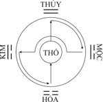 Giữa chúng còn có một quy luật tương sinh, tương khắc tuần hoàn không dứt. “Tương sinh” mang ý là cùng sinh ra nhau, giúp nhau lớn mạnh, tức là mộc sinh hỏa, hỏa sinh thổ, thổ sinh kim, kim sinh thủy. “Tương khắc” là mang ý chế ước lẫn nhau, kìm hãm nhau, tức thủy khắc hỏa, hỏa khắc kim, kim khắc mộc, mộc khắc thổ, thổ khắc thủy.