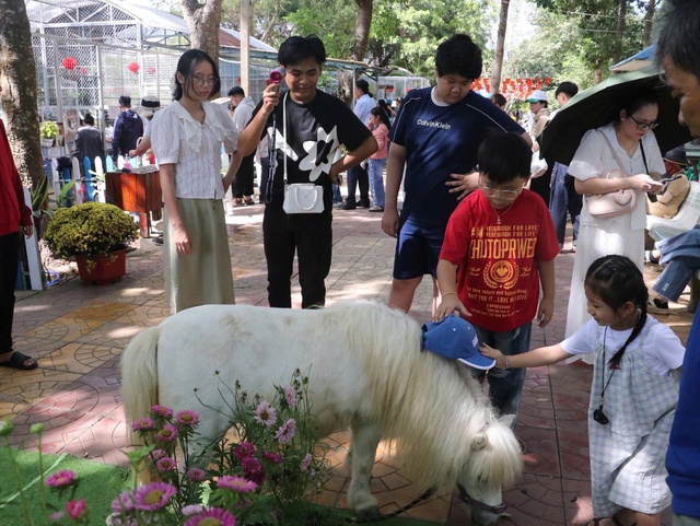 Xung quanh là hàng trăm du khách, chủ yếu là trẻ em, háo hức chờ đến lượt vuốt ve, chụp hình và cho ăn. Pony là giống ngựa có vóc dáng nhỏ, chân ngắn, cổ thấp và trán rộng. So với ngựa thường, chúng trông tròn trịa, hiền lành và tạo cảm giác gần gũi với trẻ nhỏ.