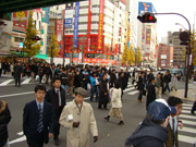 Dễ dàng bắt gặp cảnh tượng người Nhật đi như chạy. Phương tiện giao thông công cộng phổ biến của Nhật là tàu cao tốc Shinkansen chạy chính xác từng giây. Trễ hơn 1 phút là bất thường. Bởi vậy, trước khi tàu đến ga độ mươi phút là hành khách túa vào ga hối hả như đàn kiến nhưng lại rất trật tự. Ở những nơi có thang cuốn, nhiều người không đứng yên mà còn "đua" theo thang. Cho nên đi thang cuốn, bắt buộc bạn phải đứng nép về bên phải dành phía bên trái cho những ai muốn đi nhanh hơn. Tính khẩn trương, tiết kiệm thời gian của người Nhật là thế. Nhiều người Nhật còn vừa đi vừa ăn. Ngay trên vỉa hè cũng có những xe bán thức ăn nhanh nhưng được xếp ngay hàng thẳng lối. Người Nhật tranh thủ ngủ gà ngủ gật trên tàu điện ngầm.