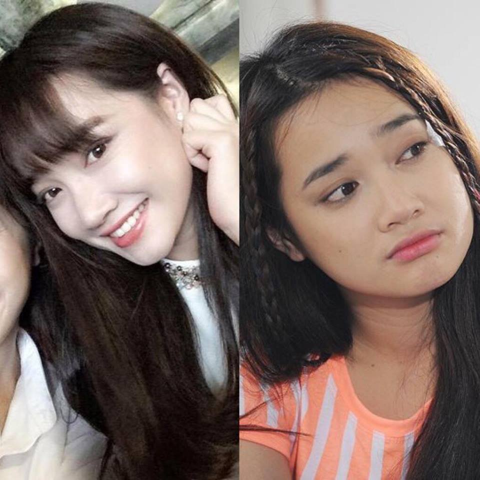Gương mặt bị cho là 'cứng đờ' của Nhã Phương trong buổi ra mắt phim Taxi, em tên gì (trái) và Nhã Phương thời đóng phim Tuổi thanh xuân phần 1 |