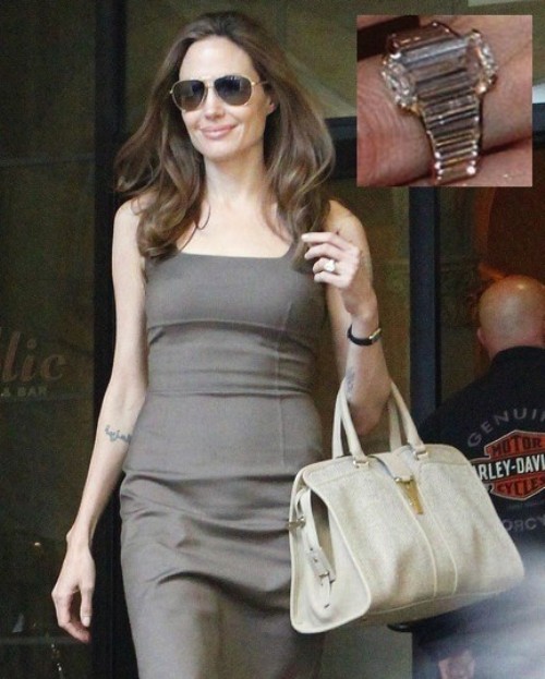 Brad Pitt cầu hôn Angelina Jolie với sự giúp đỡ của Robert Procop trong chiếc nhẫn toàn kim cương 16 carat. Giá trị của nó không thấp hơn nửa triệu USD