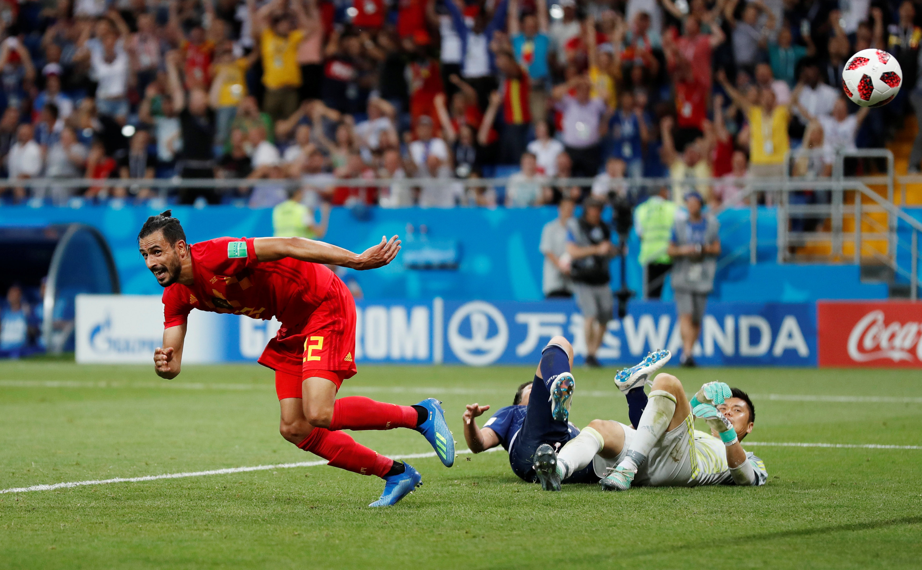 5 phút sau đó, phút 74, một trong những cầu thủ bị fan Manchester United ghét nhất là Marouane Fellaini được tung vào sân đã chơi như tiền đạo, và đón được quả tạt của Edin Hazard đè trung vệ Nhật Bản gỡ hòa 2-2 cho tuyển Bỉ.