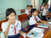 Cô Phạm Thúy Nga chủ nhiệm lớp 5E bức xúc: “Mùi mắm rất hôi, chịu không được, nhất là vào buổi trưa. Tôi dạy học ở đây phải mang dầu theo để xoa cho đỡ hôi”. Thấy chúng tôi ngạc nhiên khi nhìn các chai dầu xanh trên bàn học sinh, cô Nga giải thích: “Học sinh ở đây em nào cũng mang dầu vào lớp để xoa mũi. Học hành trong môi trường như thế này hoài các em sẽ bệnh mất”.