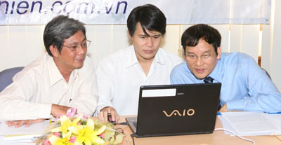 Ông Nguyễn Tiến Dũng (trái) đang trả lời các câu hỏi của bạn đọc. |