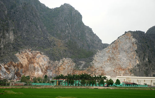 3. Cả ngày, tôi vác máy ảnh theo ông Viêm lượn lờ khắp vùng Tiên sơn linh mẫu (gần nhà ông Viêm, chùa Hoa Long và đền thờ Trần Khát Chân), quần áo nhuộm một màu trắng đục bởi bột đá, do hàng trăm tổ hợp, xí nghiệp, công ty khai thác đá xẻ “rắc” lên người. Một đại công trường đang “ăn thịt” núi suốt ngày đêm hoạt động với đủ các loại xe chuyên chở đá làm cho cả một vùng quê vốn yên bình trở nên sôi động và mù mịt bụi. Chưa có thống kê chính xác, nhưng mỗi ngày ở Linh sơn mẫu cũng như vùng phụ cận mất đi hàng ngàn m3 đá. Theo đó, các vụ tai nạn cũng từ đó tăng lên cướp đi nhiều sinh mạng và hàng trăm người khác mang thương tích. Đến độ gần như cả làng Bền (xã Vĩnh Minh) người dân không dám làm nghề khai thác đá ở Linh sơn mẫu.