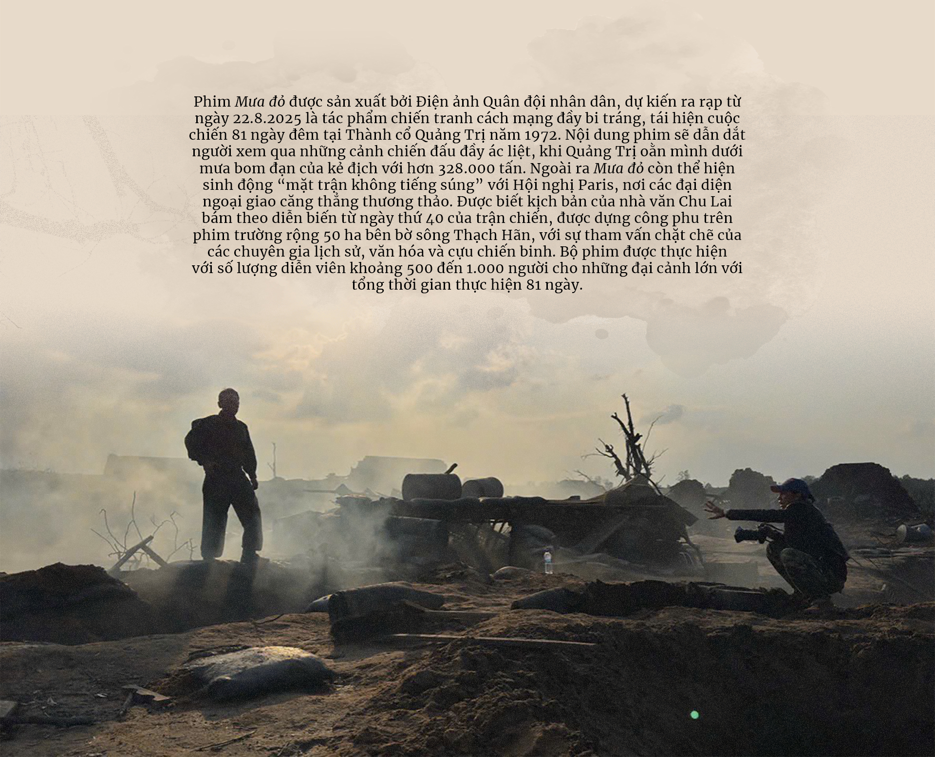 Không chỉ tôi mà điện ảnh Quân đội khi quyết định thực hiện dự án Mưa đỏ đã kỳ vọng đây không chỉ là một bộ phim chiến tranh, mà là một lát cắt chân thực và cảm xúc, là nén tâm nhang bằng hình ảnh để tri ân một thế hệ đã dâng hiến tuổi thanh xuân cho đất nước.