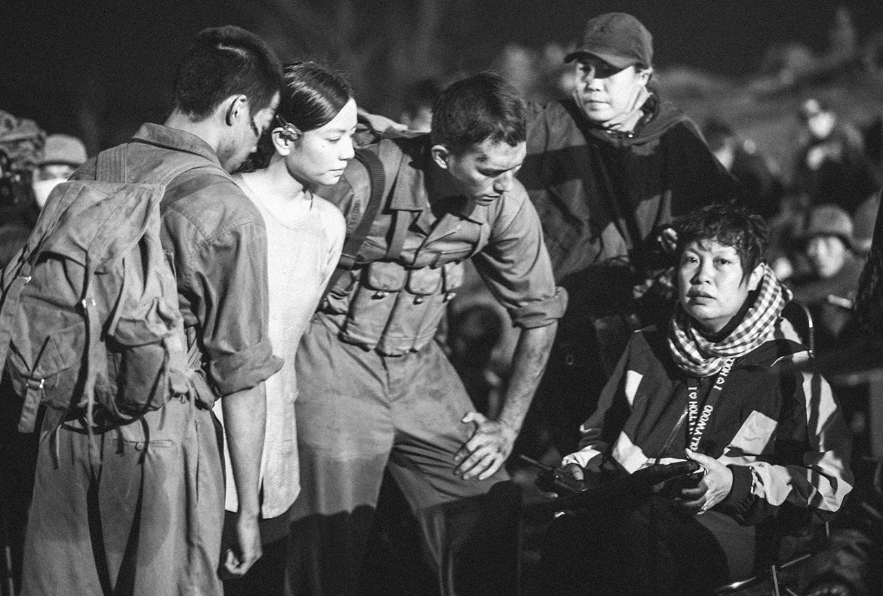 Đạo diễn Đặng Thái Huyền đang chỉ huy trên trường quay phim Mưa đỏ