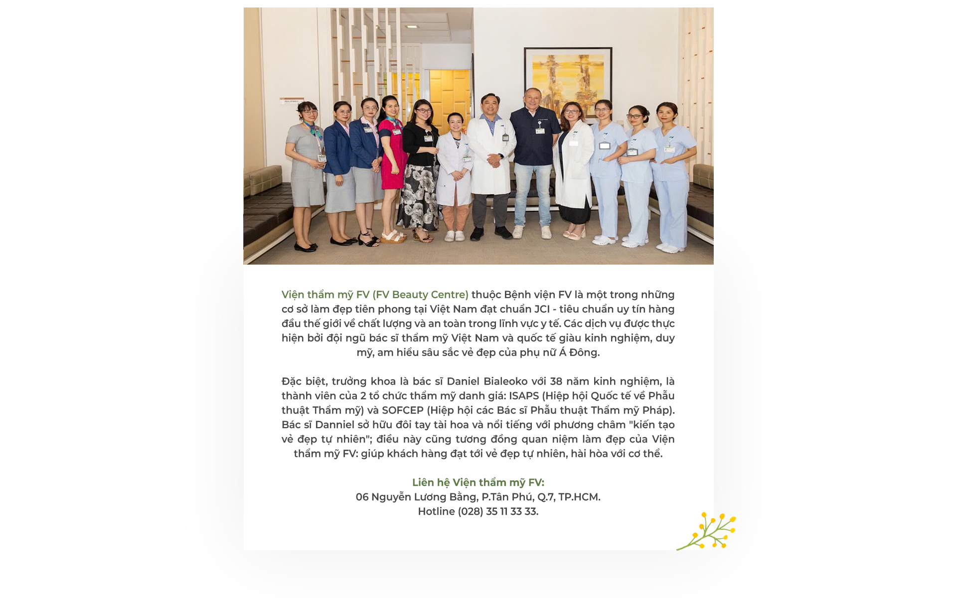 Cách đây 1 năm, khi Viện thẩm mỹ FV (FV Beauty Centre - thuộc Bệnh viện FV) giới thiệu công nghệ hút mỡ kết hợp điêu khắc đường cong cơ thể Vaser Lipo, chị Lệ Thu tìm hiểu rất kỹ phương pháp làm đẹp này và thực sự ấn tượng với hiệu quả của nó.