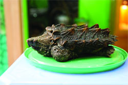 Chỉ vào con rùa Alligator có gai như cá sấu rất "bặm trợn", anh Minh Văn bảo: "Thấy nó đẹp và gai góc, tôi thích quá nên mua lại của một người bạn với giá hơn 300 USD. Nuôi nó cũng như một con vật ở trong nhà. Tôi đang tính sẽ kiếm mua thêm vài con nữa để cho "có chị có em"...