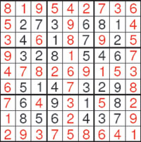 Điền vào các ô còn trống sao cho mỗi hàng, mỗi cột và mỗi miền đều chứa 9 con số (không lặp lại) từ 1 đến 9.