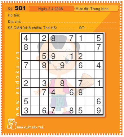 Danh sách trúng thưởng và lời giải ô số Sudoku kỳ 501 sẽ được đăng trên Thanh Niên số 100 ra ngày 9.4.2008.