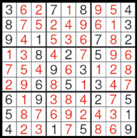Điền vào các ô còn trống sao cho mỗi hàng, mỗi cột và mỗi miền đều chứa 9 con số (không lặp lại) từ 1 đến 9.