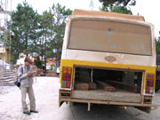 Rạng sáng qua 19.11, Đội Kiểm lâm cơ động số 1 - Chi cục Kiểm lâm Lâm Đồng kéo ô tô khách chở gỗ lậu, mang biển số 49H-6246 từ H.Đơn Dương về trụ sở chi cục để điều tra xử lý (ảnh). Tối ngày 18.11, nhận được tin báo, có xe ô tô chở gỗ lậu đang vào TP Đà Lạt, Đội Kiểm lâm tiến hành chặn bắt.