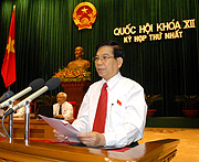 Ứng cử viên Thủ tướng Chính phủ: Ông Nguyễn Tấn Dũng, sinh ngày 17.11.1949, quê thành phố Cà Mau, tỉnh Cà Mau, cử nhân luật. Là ĐBQH các khóa 10, 11 và khóa 12 này ông trúng cử tại Hải Phòng với số phiếu 99%. Tại phiên họp Quốc hội giữa nhiệm kỳ hồi tháng 6.2006, ông đã được bầu làm Thủ tướng Chính phủ.