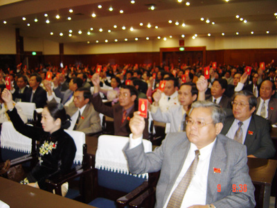 Các đại biểu biểu quyết thông qua Nghị quyết Đại hội |
