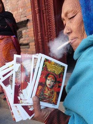 Bán ảnh Nữ thần sống bên ngoài ngôi đền - Ảnh: Khánh Huyền