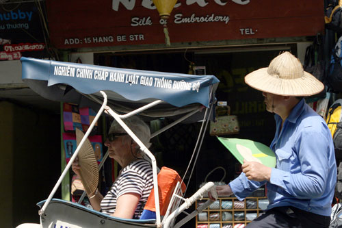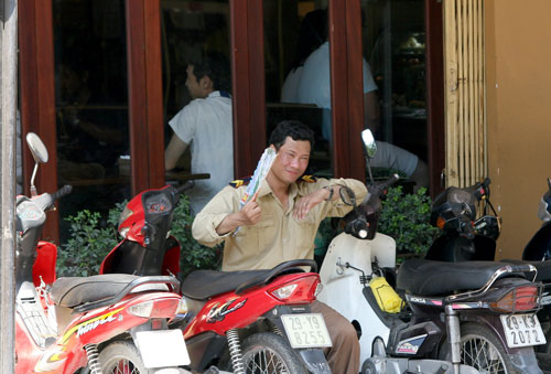 Nhiệt độ ngoài trời, nhất là vào giữa trưa lên đến hơn 36oC. Đường phố Hà Nội vắng hoe.