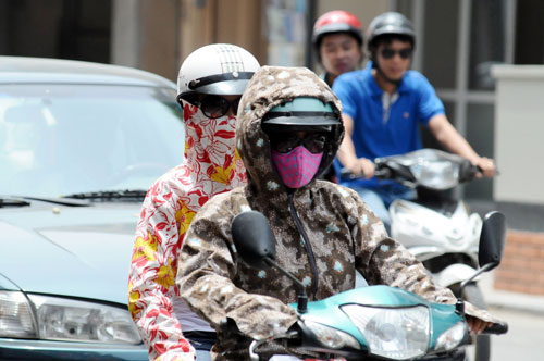Đi trên đường phố Hà Nội, nhiều người phải ăn mặc kín để tránh nắng nóng