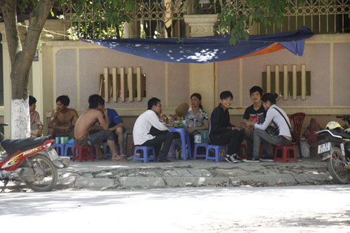 Buổi trưa, nhiệt độ ngoài trời ở Hà Nội lên đến hơn 360C, nhiều người tìm đến các quán trà đá dưới bóng cây để hạ nhiệt