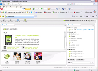 Giao diện của trang web http://www.ola.vn thay đổi đáng kể với sự xuất hiện của các room chat: thể thao, âm nhạc, giới tính. Tại room chat thể thao, những tin tức nóng bỏng của bóng đá trong và ngoài nước được đưa lên hàng ngày, tạo thành diễn đàn để mọi người có thể bình luận, dự đoán. Room chat âm nhạc cũng vậy, những sự kiện, sinh hoạt đời thường mới nhất của các diva, tài tử không chỉ cung cấp tin tức mà còn tạo “không gian mở” để thành viên chat thỏa sức… comment. Theo anh Lê Nguyên Bá Khang, phụ trách nội dung trang web Ola, chat theo chủ đề cũng giúp các thành viên dễ dàng kiếm được “bạn tâm giao” chứ không như việc chat trực tiếp hay theo nhóm đơn thuần.
