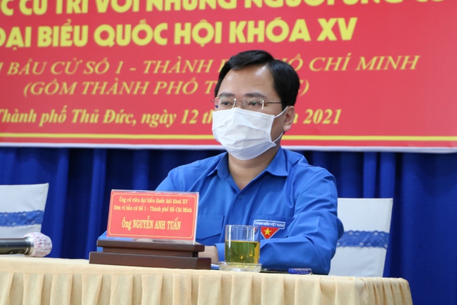Chia sẻ với các cử tri, Ủy viên T.Ư Đảng, Bí thư thứ nhất T.Ư Đoàn, Chủ tịch T.Ư Hội Liên hiệp Thanh niên Việt Nam, anh Nguyễn Anh Tuấn, cho biết: “Khi bản thân tôi và mọi người có được cơ hội ngồi ở đây tiếp xúc với cử tri, với bà con nhân dân thì hiện tại có rất nhiều anh em, những người đang ở tuyến đầu góp phần phòng chống dịch Covid-19 như: lực lượng biên phòng, cảnh sát biển, hải quân đang ngày đêm túc trực làm nhiệm vụ ở các tuyến biên giới kể cả trên bộ và trên biển. Chúng ta phải nói lời cảm ơn rất nhiều đến những lực lượng ấy. Kế đến là đội ngũ các y, bác sĩ, họ là những người trực tiếp đang điều trị, phòng chống dịch bệnh và có nguy cơ lây nhiễm là lớn”.