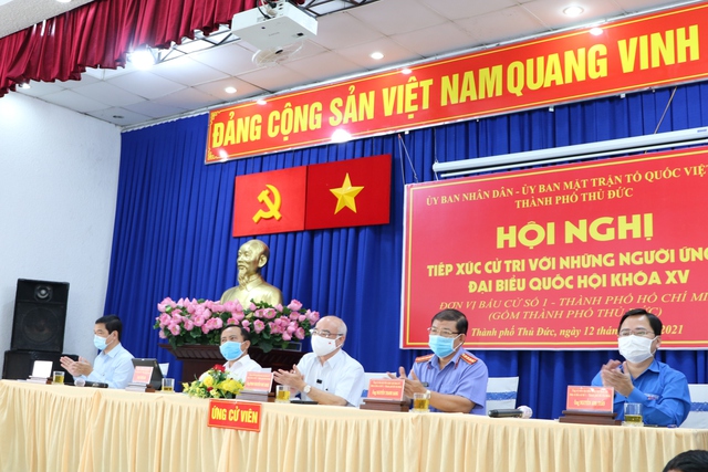 Các cử tri quan tâm đến vấn đề phòng chống dịch Covid-19 tại Hội nghị tiếp xúc với những ứng cử đ ại biểu Quốc hội khóa XV, nhiệm kỳ 2021 -2026 , ở Nhà văn hóa P.Cát Lái, TP.Thủ Đức (TP.HCM) vào ngày 12.5.