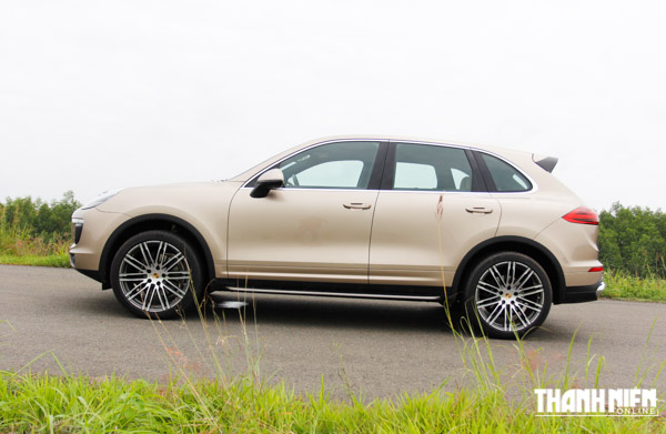 Cayenne 2015 mà chúng tôi diện kiến có màu sơn ngoại thất vàng ánh kim, bộ vó gồm mâm 21 inch được thiết kế thể thao theo kiểu của 911. Gói trang bị này, nếu chủ nhân chiếc xe muốn sở hữu phải dốc thêm hầu bao gần 300 triệu đồng.
