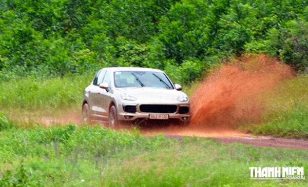 Có chút bối rối khi ngồi sau vô lăng Cayenne 2015 lúc này, bởi trước mắt là cung đường địa hình lem luốc bùn đất. Chợt anh bạn đi cùng bảo khẻ “chuyển qua chế độ offroad đi, rồi cứ thế mà lướt, Cayenne tuy sang nhưng chẳng ngán địa hình đâu!”. Thế rồi, tự tin miết chân ga đưa xe vượt qua những cung đường bùn lầy đầy đất đỏ. Lúc này, người lái khá phấn khích nhờ hỗ trợ của hệ thống giảm xóc bằng thép và kiểm soát lực kéo (PTM) hoạt động hiệu quả giúp chiếc xe vượt qua địa hình chẳng chút khó khăn.