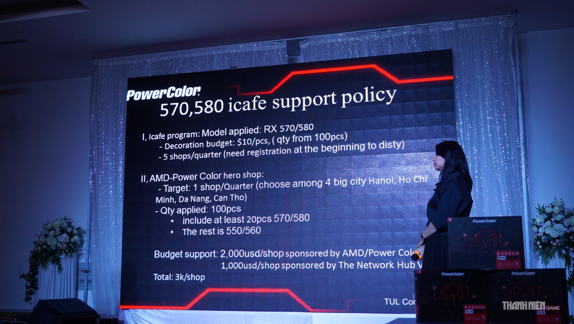Tại Việt Nam, PowerColor là một trong những thương hiệu card đồ họa AMD có chất lượng và mức độ phổ biến nằm trong top đầu. Do đó, cũng không quá ngạc nhiên khi đây là hãng đầu tiên tổ chức sự kiện ra mắt, giới thiệu dòng RX 500 cùng với hàng loạt chế độ đãi ngộ đi kèm. Vào tối ngày hôm qua (19.4), sự kiện đã được tổ chức tại TP.HCM, do The Network Hub Việt Nam (nhà phân phối chính thức của PowerColor tại Việt Nam) đứng ra chủ trì.