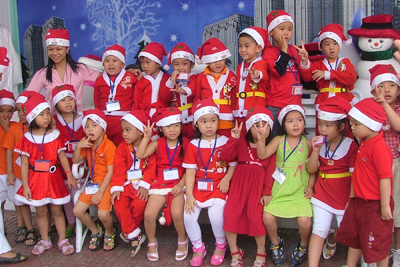 Chúng tôi bắt gặp ở đây rất nhiều những “ông già” Noel nhí đang vui đùa bên trong khu vui chơi. Anh Thành, nhà ở Cầu Long Biên cho biết: “đón con đi học về tôi cho cháu ra đây chơi luôn vì sợ một lúc nữa thì tắc đường, có khi không đi được”. Cũng giống anh Thành, rất nhiều những bậc phụ huynh đã dẫn con cháu đến Vincom sớm hơn thường ngày để tranh thủ chụp ảnh!