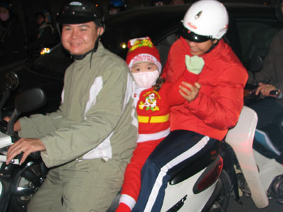 *Tại Hà Nội, từ buổi sáng, những đợt gió mùa Đông Bắc tăng cường đã làm cho không khí Noel tại đây "nóng lên". Khắp các nẻo đường tràn ngập các màu sắc sinh động từ những bộ quần áo đỏ của ông già tuyết, cây thông Noel xanh, trắng và những hang đá đủ hình dạng...