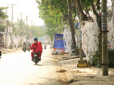 Đến chiều 24.12, không khí Noel đang dần nóng lên, người dân theo họ đạo khu vực đường Phạm Thế Hiển, Q.8, TP.HCM nô nức chờ đến giờ Giáng sinh. Từ cầu Nhị Thiên Đường, quẹo phải vào đường Phạm Thế Hiển, mọi người sẽ hoa mắt với đèn hoa kết, cây thông, tuyết trắng… dọc đường mà người dân hai bên đường trang trí đón Giáng sinh.