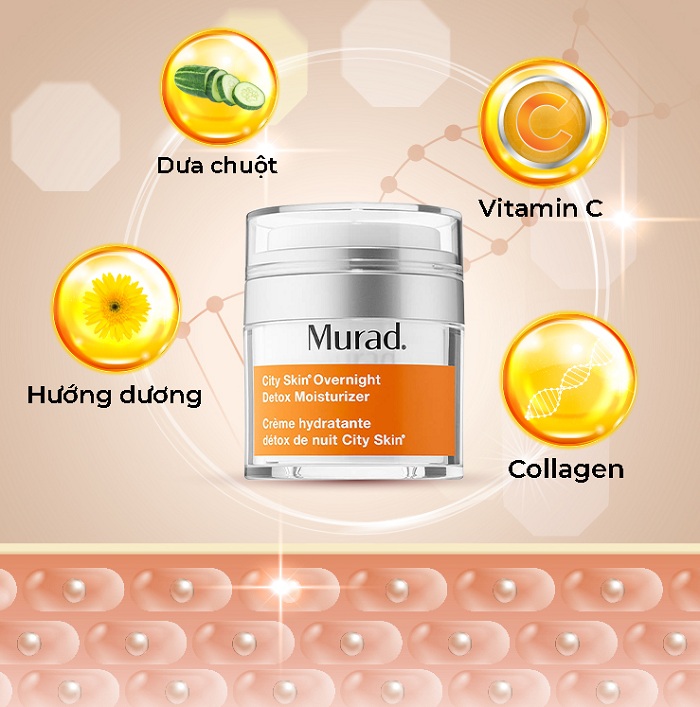 Kem dưỡng Murad City Skin Overnight Detox Moisturizer giàu vitamin C và các dưỡng chất cần thiết cho việc thải độc, phục hồi, bảo vệ da |