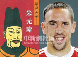 | Hình ảnh của Chu Nguyên Chương và Ribery tràn ngập trên các phương tiện thông tin Trung Quốc - Ảnh: SINA.COM |