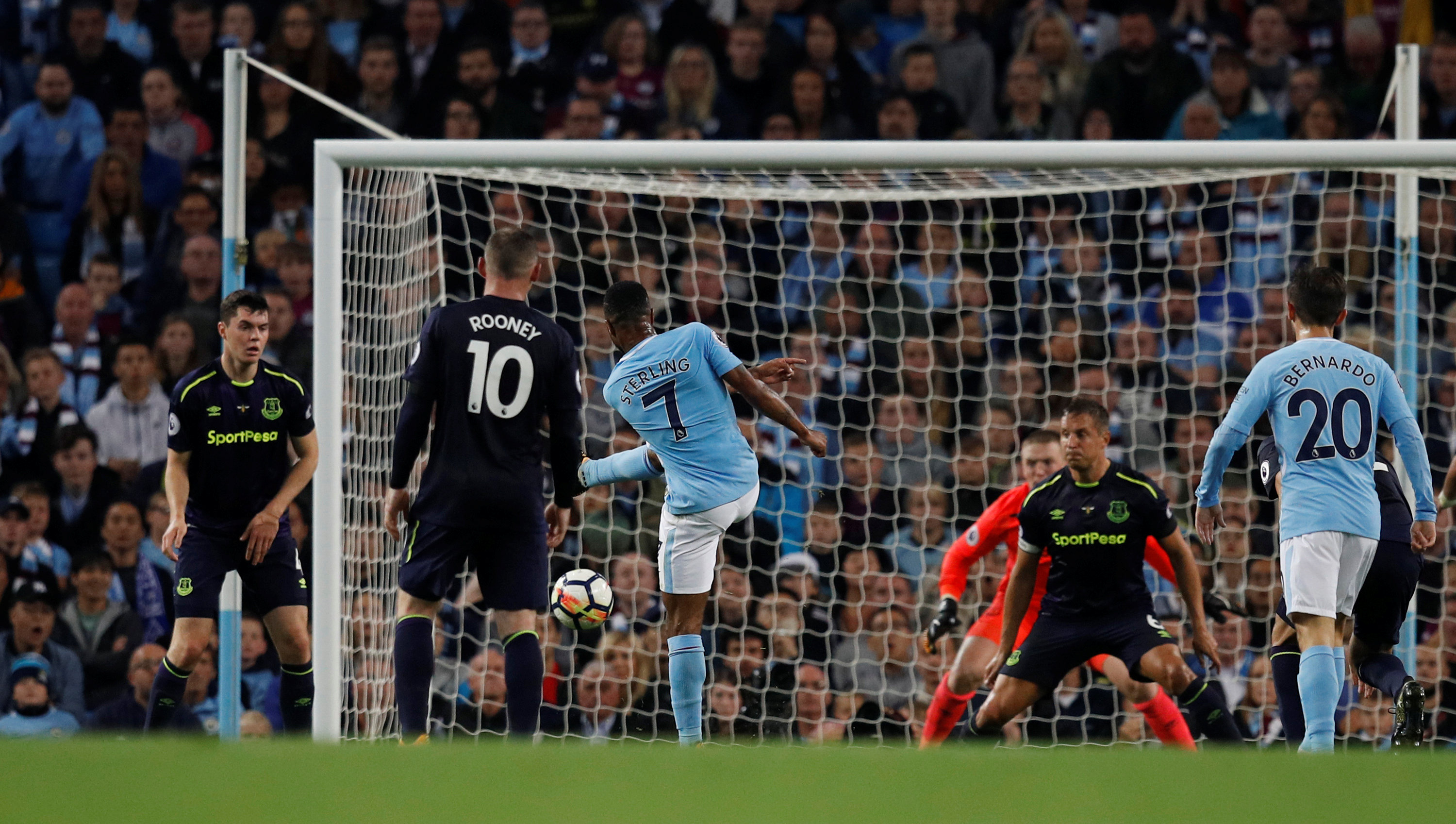 Trong khi đó, Man City dù thi đấu thiếu người trong suốt hiệp 2 nhưng cũng đã tạo ra được nhiều tình huống uy hiếp khung thành Everton. Dù vậy, các học trò của HLV Pep Guardiola không sao chuyển hóa được thành bàn thắng. Phải đến những phút cuối, cầu thủ vào thay người là Sterling mới có thể ghi bàn trong một tình huống phá bóng không thành của hậu vệ đội khách.