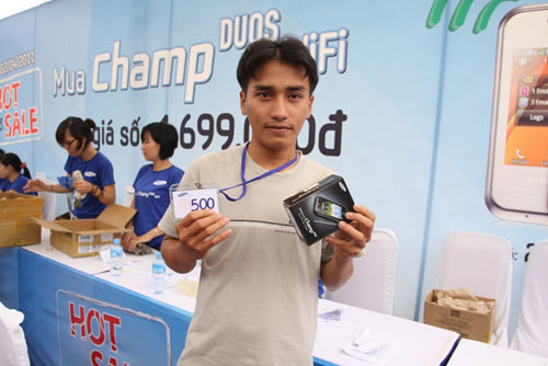 Điển hình nhất là anh Đinh Thanh Hiền, khách hàng đầu tiên của chương trình. Nhà ở Bình Dương, anh Hiền đã lên TP.HCM từ 10 giờ tối hôm trước để 3 giờ sáng hôm sau sẵn sàng xếp hàng tại Sân vận động Hoa Lư. Anh chia sẻ: “Vì những tính năng tiện dụng như 2 sim 2 sóng, kết nối Wifi… của Champ Duos, tôi phải tranh thủ mua bằng được!”.