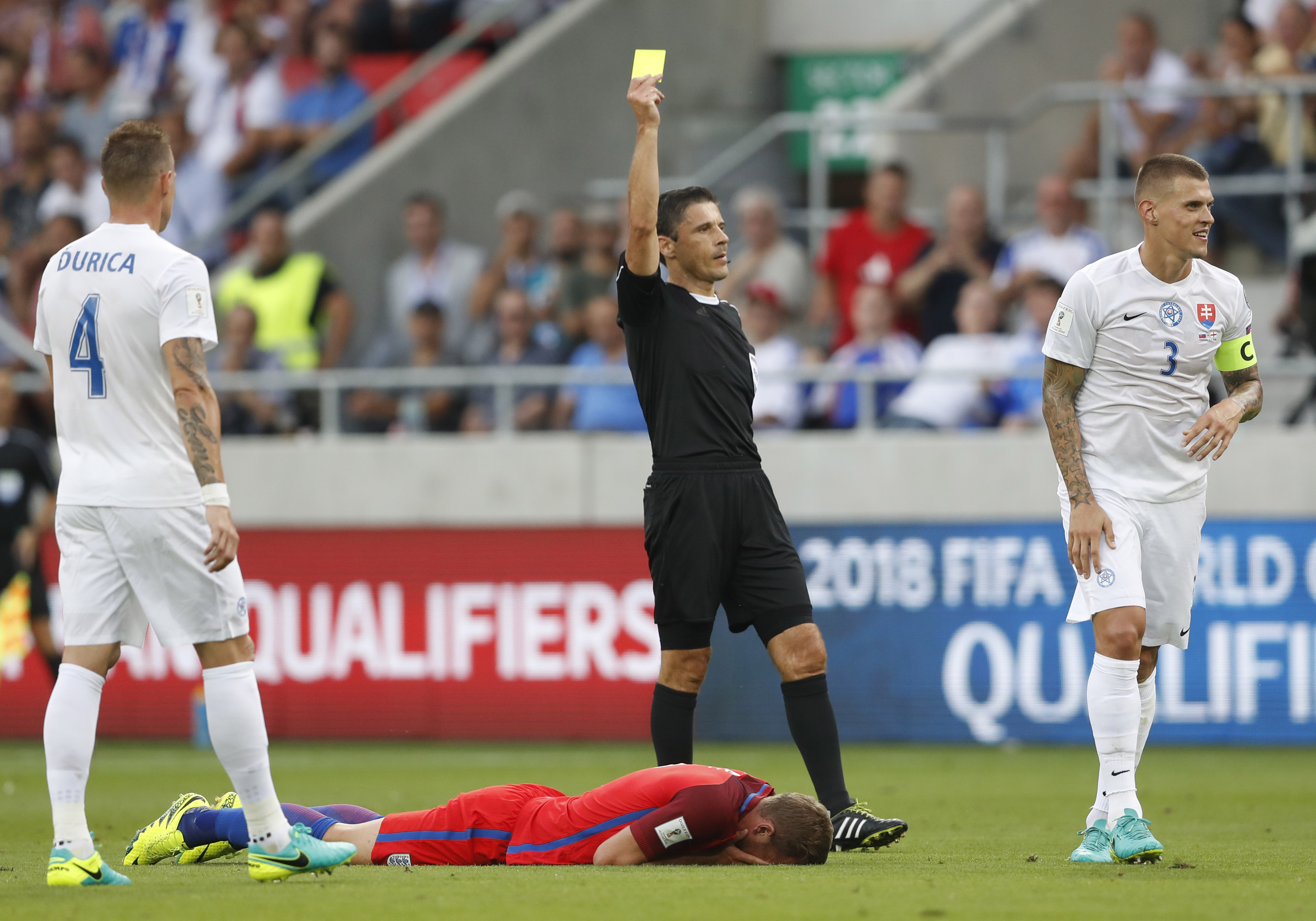 Dù phải chơi thiếu người nhưng Slovakia chưa cho thấy họ lép vế so với tuyển Anh | |