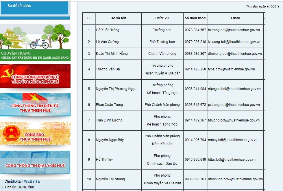 Danh sách cán bộ, nhân viên của Ban dân tộc có 15 người, nhưng tới 10 lãnh đạo Ảnh chụp từ Website của Ban dân tộc tỉnh Thừa Thiên Huế |