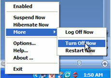 Sau khi thiết lập xong, bạn bấm OK. Khi chương trình đang chạy mà bạn muốn tắt máy thì có thể bấm chuột phải vào biểu tượng chương trình trên khay hệ thống. Di chuyển đến dòng chữ More trong Menu xuất hiện và bạn có thể bấm chọn tắt máy hay khởi động lại máy.