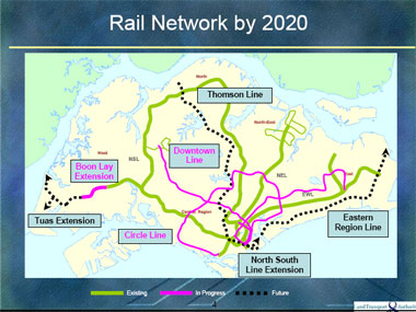 Cùng với việc nối dài các tuyến đang có, đến năm 2020 tổng chiều dài hệ thống MRT của Singapore sẽ là 278km, đạt mật độ 51km/1 triệu dân, cao hơn ở Tokyo, Hồng Kông và có thể ngang bằng với những thành phố có mật độ đường xe lửa nội đô lớn nhất trên thế giới như London, New York.