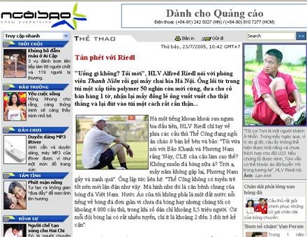 Trước hết, bài báo Tán gẫu với Riedl đăng trên Thanh Niên đăng ngay trong số báo có bài “Công nghệ xào nấu” siêu hạng của ngoisao.net, đã được ngoisao.net nhắm mắt "xào" lại theo một cách thức không đổi với tựa bài được đổi một cách bôi bác là Tán phét với Riedl. Việc thay đổi từ "tán gẫu" sang "tán phét" một cách tùy tiện đã đồng thời xúc phạm 2 người: HLV đội tuyển U.23 VN Riedl và tác giả Lan Phương.