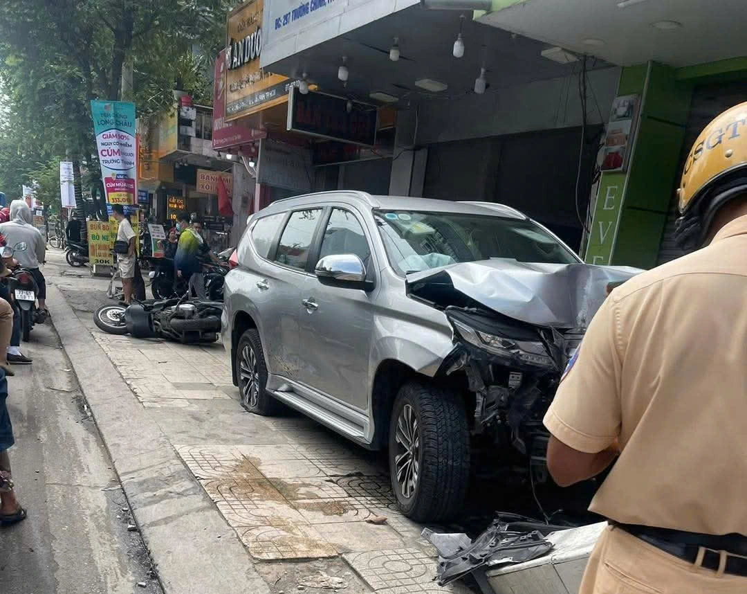 Tiếp đó, chiếc ô tô tông dải phân cách thép, lao qua chiều ngược lại. Chiếc xe chỉ dừng lại khi tông vào một xe máy và húc gãy trụ điện trên vỉa hè.