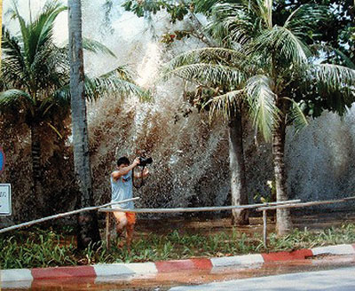 Sóng thần tạo nên một bức tường đầy bọt, cứ tiến vào bờ cho đến khi năng lượng tiêu tán hoàn toàn. Do nó chỉ toàn nước trắng (sủi bọt), không có phần đáy để ván trượt có thể tựa vào. Do đó nếu tay chơi nào cố tình chui vào vùng nước khủng khiếp đó, anh ta sẽ bị va đập xung quanh khối chất lỏng này.