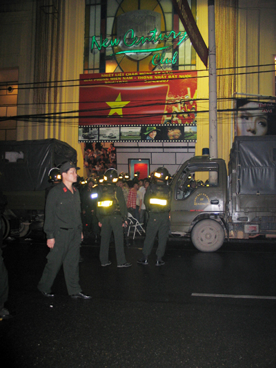 Ngay sau khi đổ quân xuống số 10 phố Tràng Thi, hàng trăm CSCĐ với các công cụ hỗ trợ đã nhanh chóng ập vào trong vũ trường, kiểm soát toàn bộ. Bảo vệ vũ trường lên đến vài chục người đã bị khống chế ngay lập tức và không có biểu hiện chống cự. Ở bên ngoài, hàng chục CSCĐ được phân công chốt chặn các ngã tư Tràng Thi - Phủ Doãn và Tràng Thi - Quang Trung (hai đầu đường dẫn đến vũ trường New Century), "nội bất xuất, ngoại bất nhập". Bãi đỗ xe máy và bãi đỗ ô tô của vũ trường (thuê địa điểm tại Thư viện Quốc gia - đối diện vũ trường) cũng bị khống chế và giữ nguyên hiện trạng.