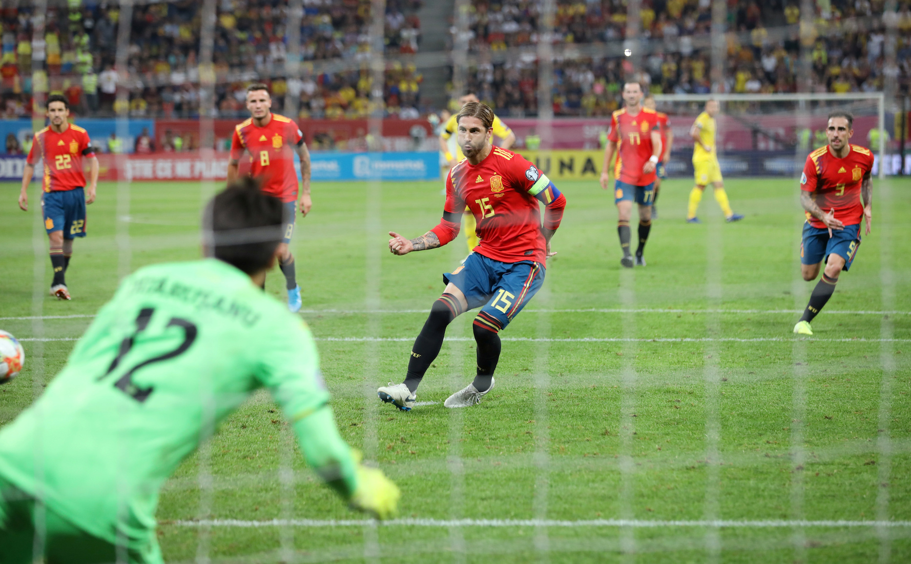 Đội trưởng Sergio Ramos là người ghi bàn mở tỷ số cho Tây Ban Nha ở phút 27 sau khi thực hiện thành công quả đá phạt đền. Đó là bàn thắng thứ 4 trong 5 trận vòng loại EURO 2020 của cầu thủ thuộc biên chế Real Madrid, trong đó có 3 bàn từ chấm 11m.