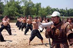 Lý Hùng tất bật hướng dẫn võ thuật cho diễn viên quần chúng - Ảnh: Đình Phú |