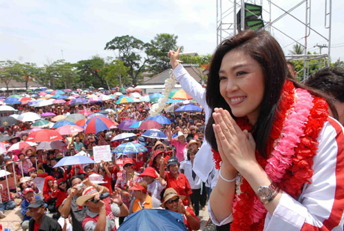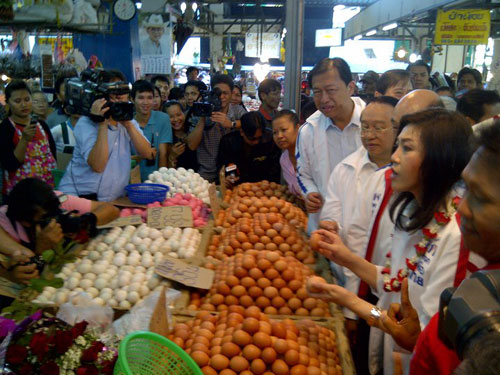 Bà Yingluck cùng với các thành viên trong đảng Puea Thai đang thực hiện chiến dịch tranh cử trên khắp cả nước. Mục đích mà bà muốn đạt được là niềm tin của người dân đối với một nữ chính trị gia và đối tượng bà muốn nhắm đến cũng là những nữ cử tri. Có lẽ vì thế mà nơi bà Yingluck ra mắt đầu tiên sau khi đảng Puea Thai công bố người tranh cử là các chợ ở Bangkok, địa điểm tụ tập phần lớn các quý bà. Thông điệp mà bà Yingluck muốn gửi đến họ cũng rất "lạ", đó là thay đổi đơn vị kinh doanh trứng ở Thái Lan (hiện ở Thái Lan trứng được mua bán theo đơn vị ký thay vì trái). Ngoài ra, bà còn nhắm đến đối tượng thu nhập trung bình khi đưa ra thông điệp về giao thông công cộng, rằng tất cả mọi người đều có thể đi lại bằng phương tiện giao thông thuận tiện, rẻ và tin cậy nhất.
